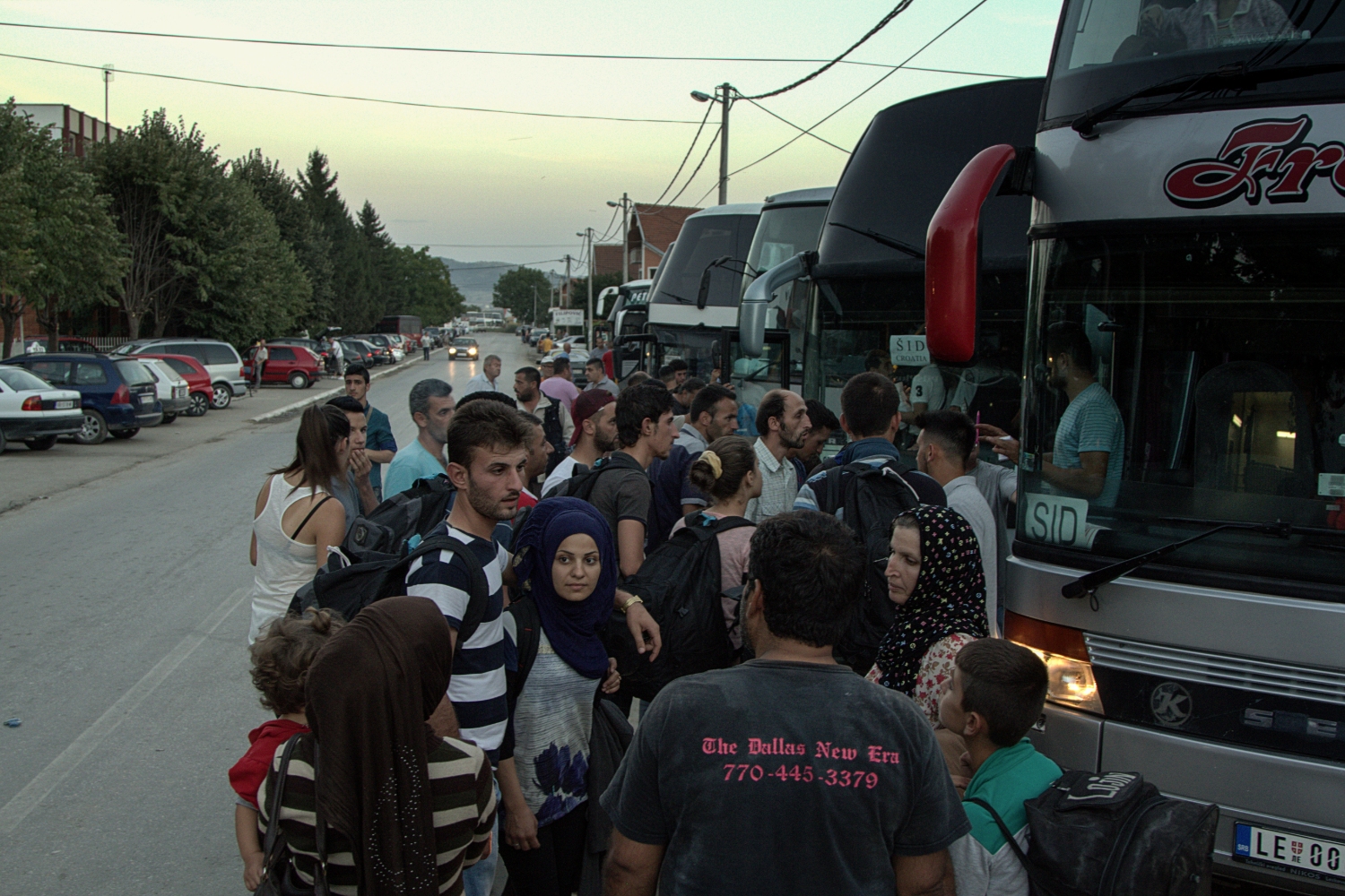 Tras un breve avituallamiento y un primer registro, la familia es transportada a un centro de acogida estatal a siete kilómetros de distancia, en la localidad de Presevo, donde, tras largas colas a altas temperaturas, recibirán sus documentos temporales. A la salida esperan decenas de autobuses que un tiempo atrás conducían a Belgrado o al confín con Hungría pero que ahora, tras el cierre de las fronteras y el endurecimiento de la ley húngara en inmigración, se dirigen al precio de 25 euros por persona a Sid, en la frontera con Croacia.